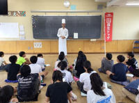 6年生は、総合的な学習の時間で、福生ドッグづくりに取り組んでいます。9月4日(木)には、福生ドッグの開発・販売に携わっている商工会の方と福生ソレイユさんから、福生ドッグの歴史や販売にあたっての苦労や工夫について教えていただきました。