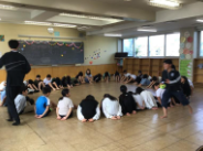 7月11日(金)にセーフティー教室があり、低学年と高学年に分かれて参加しました。映像を見たり、警察署の方のお話を聞いたりして、身近にある様々なトラブルから身を守る方法を学びました。