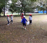 10月31日(金)、原ヶ谷戸どんぐり公園へ行き、どんぐり拾いをしました。秋の公園の様子を楽しみながら、いろいろな形のどんぐりや、きれいな色の葉をたくさん見付けました。