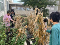 10月30日(木)、ひまわり学級では、畑で育てていたトウモロコシ「イエローポップ」を収穫しました。