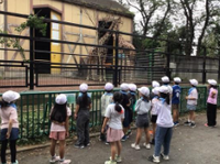 羽村市動物公園の生活科見学に向けて、2年生と顔合わせを行いました。グループごとに集まり、自己紹介と班のめあて決め、フラフープ送りリレーをしました。