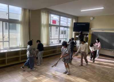 25日(木)に、教室の大掃除を行いました。子どもたちは、2学期間使用してきた教室に感謝の気持ちをもちながら、机やいす、床、ロッカーなどの清掃に取り組みました。担当場所を意識し、汚れを見つけては丁寧に掃除する姿が見られました。また、友達と協力しながら作業を進めることで、効率よく教室をきれいにすることができました。一人一人が最後まで頑張り、気持ちよく次の学期を迎える準備を整えることができました。